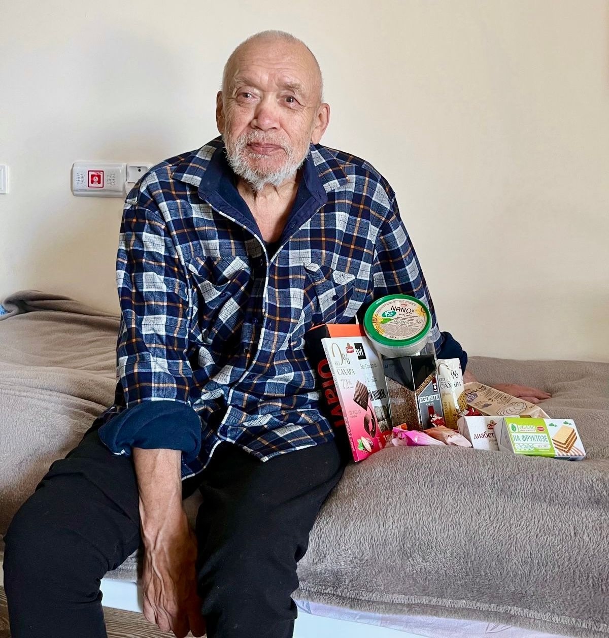 Бабцев Борис Иннокентьевич счастлив получить от Александра диабетические сладости и любимый кофе «Эгоист». Борису Иннокентьевичу исполнилось 70 лет. Он очень тронут заботой и вниманием. Благодарит от всей души.