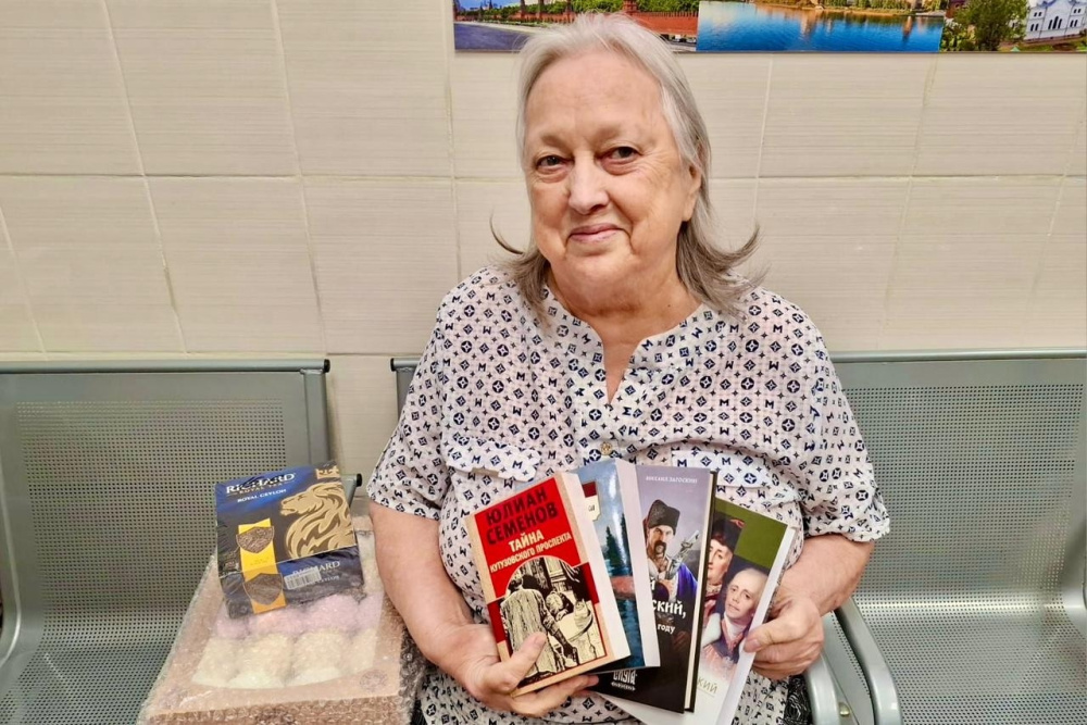 «Нашу подопечную Галину Алексеевну Варенину на её 75-летний юбилей одарила добрая фея Елена! Она получила шикарные подарки: четыре исторических романа отечественных авторов! Для истинной ценительницы книг, это лучший подарок! Конечно, не обошлось без любимых сладостей и большой упаковки чая. Праздничное чаепитие с соседками по комнате обязательно состоится! Сердечное спасибо Елене, пожелания счастья и здоровья ей. Глаза Галины Алексеевны, сияющие от счастья – это самая искренняя благодарность дарительнице!»