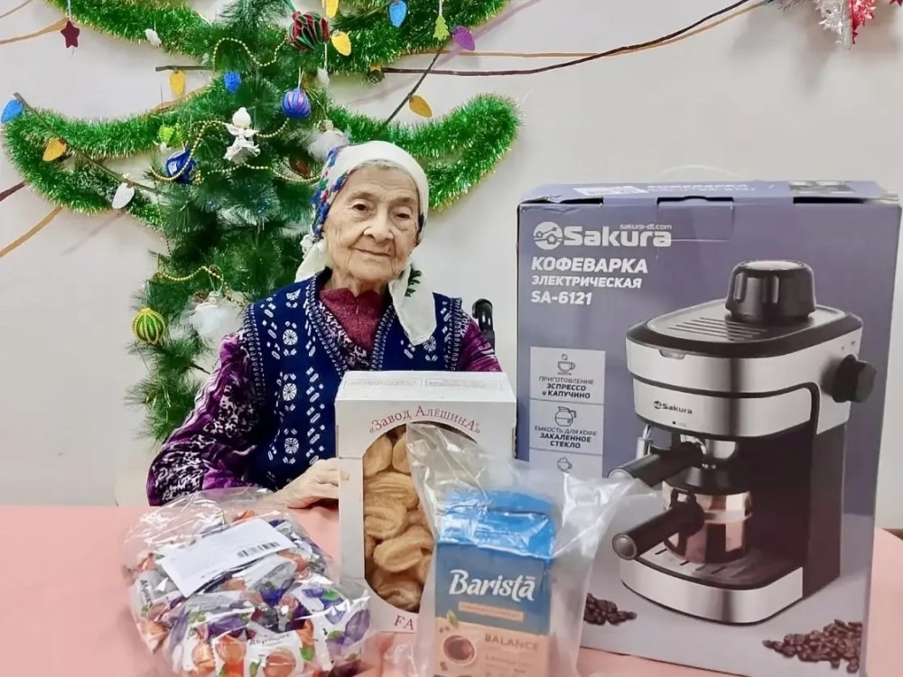 У нас есть и такие герои! Тамара Николаевна, несмотря на свой почтенный возраст, обожает порядок и уют в комнате. Она добрая, искренняя и отзывчивая. А еще она любит каждое утро начинать с чашечки ароматного кофе. Её давняя мечта - своя электрическая кофеварка - осуществилась благодаря дарительнице Нине! Нина подарила не только чудо-технику, но и сам кофе, а также сладости. Тамара Николаевна, к сожалению, уже не ходит, но память у нее остается отличной. Семьи у нее не было, поэтому дом-интернат стал её родным домом на долгие годы. Спасибо большое, Нина, за исполнение мечты в такой знаменательный день!