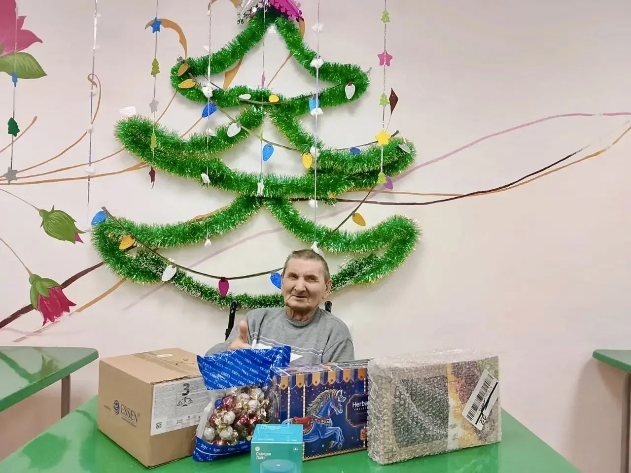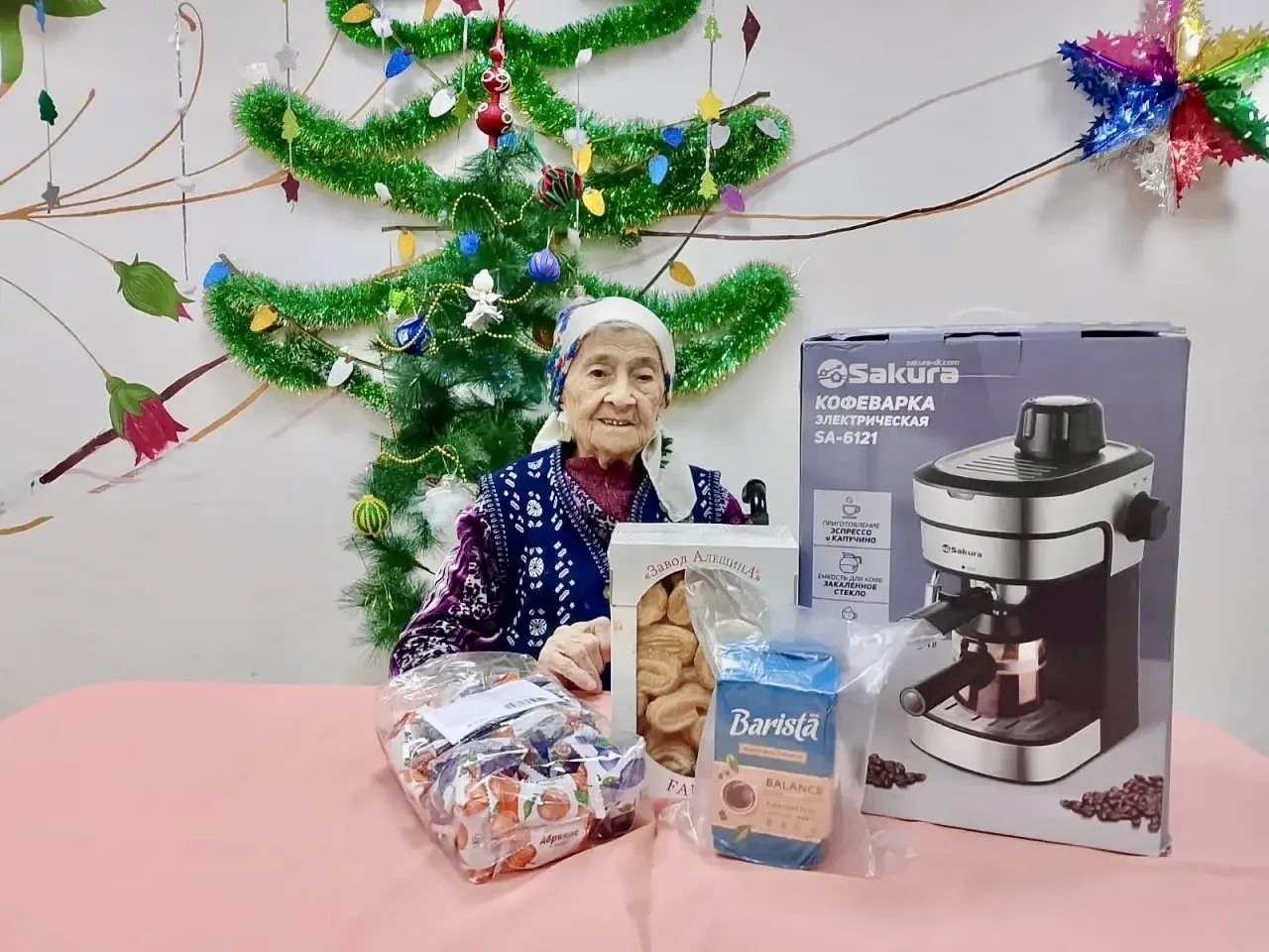 Светлана подарила Василию Михайловичу умную колонку и много сладостей. Он очень рад и доволен, передает самые наилучшие пожелания своей дарительнице.