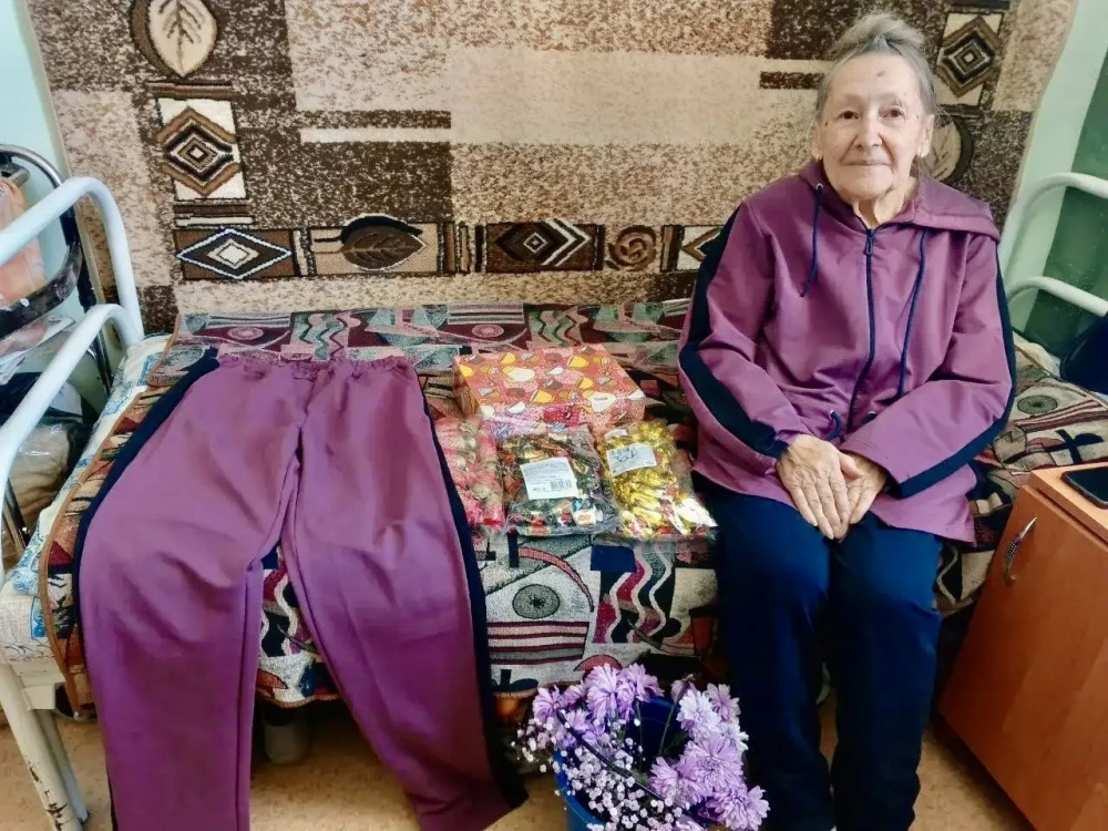 Наталия поздравила с 90-летием Эльвиру Александровну Мельникову из Семикаракорского дома-интерната. Именинница получила замечательный спортивный костюм и угощения к чаю. Эльвира Александровна очень тронута таким вниманием и передает Наталии искренние пожелания здоровья и счастья.