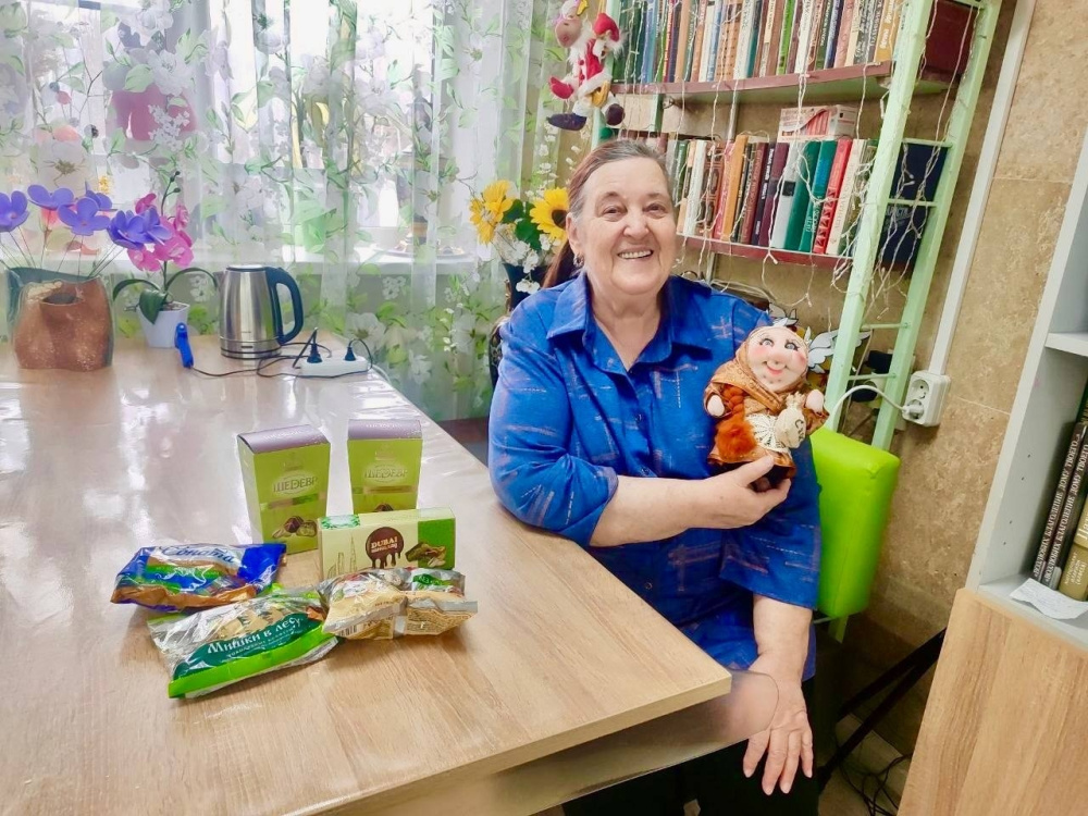 Тамара Михайловна Котченко встретила свой личный праздник в обновках. Мы благодарим дарительницу Леонтину за чудесные подарки: три красивые туники и сладости. Тамара Михайловна была тронута до слез таким вниманием. «Спасибо за заботу и вашу доброту!» - передает она всем нам.