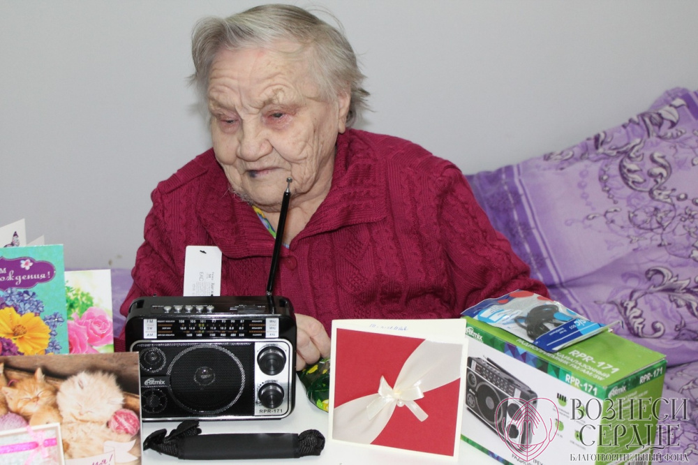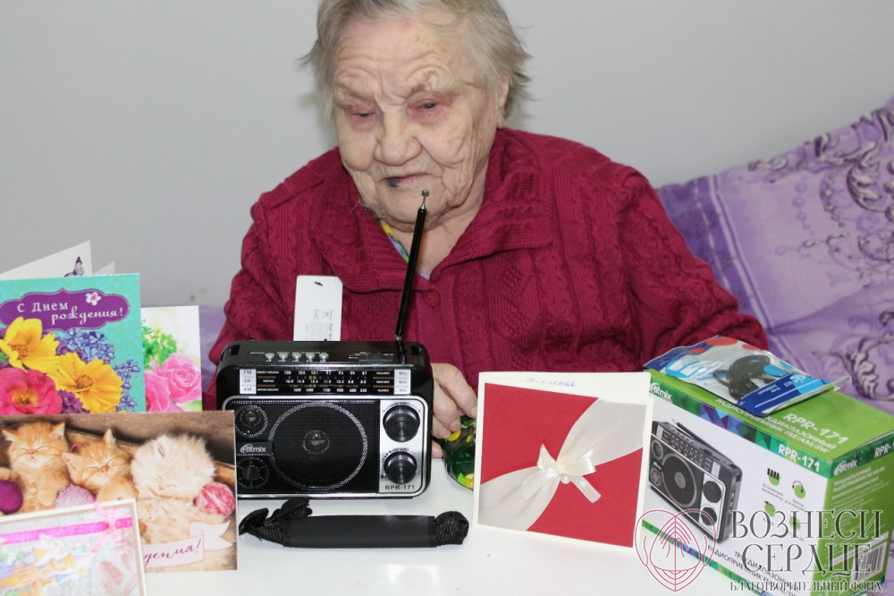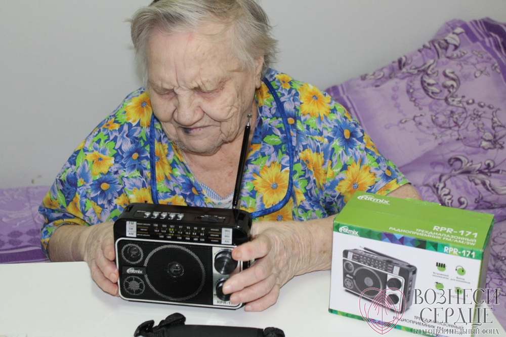 Благодаря Абысовой Марии Валерьевне из города Балашихи Московской обл. у Антонины Сергеевны появился друг и собеседник – это радиоприемник! Маленький, удобный, современный да еще с наушниками - вот какой бесценный подарок прислала Мария Валерьевна.