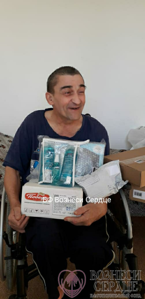 Нам пишут: «Елена Михайловна вновь порадовала наших подопечных. Коннов Василий Петрович получил в подарок фиксирующий пояс для инвалидной коляски, набор для бритья, набор для душа, дезодорант и много сладостей. Василий Петрович не ожидал, что ему столько всего пришлют. Елене Михайловне огромное спасибо и пусть мечты тоже сбываются.