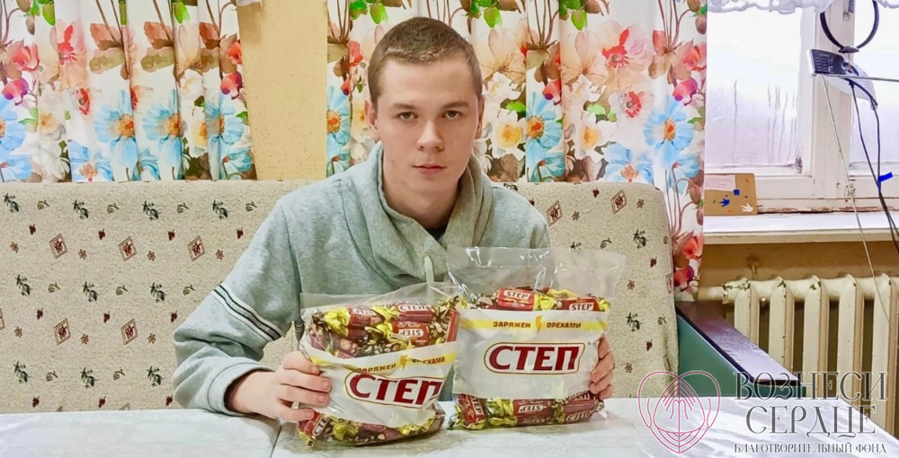 Валя с удовольствием угощает ребят по комнате. Можно прислать сладости как ему одному, так и учитывая троих парней.