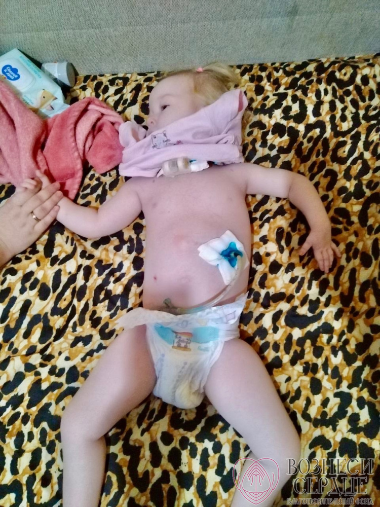 Маленькая Тамара не сидит, не ползает, не говорит, не может самостоятельно дышать и есть. Мать не ропщет на жизнь, терпеливо ухаживает за дочерью. Три раза за ночь нужно очищать трахеостому от излишней слизи и много раз днём. Питание малышке вводится через трахеостому.