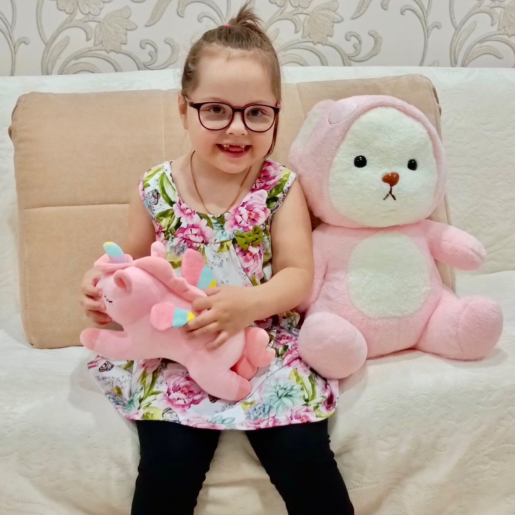 Маша - удивительно добрая и терпеливая девочка. Она любит музыку, рисование и мягкие игрушки, радуется каждому вниманию и откликается на ласку. Когда мама говорит: «Ты у меня справишься», - Маша тянет руки вверх и улыбается, будто говорит: «Я стараюсь, мама!» И мы верим - у неё обязательно всё получится.