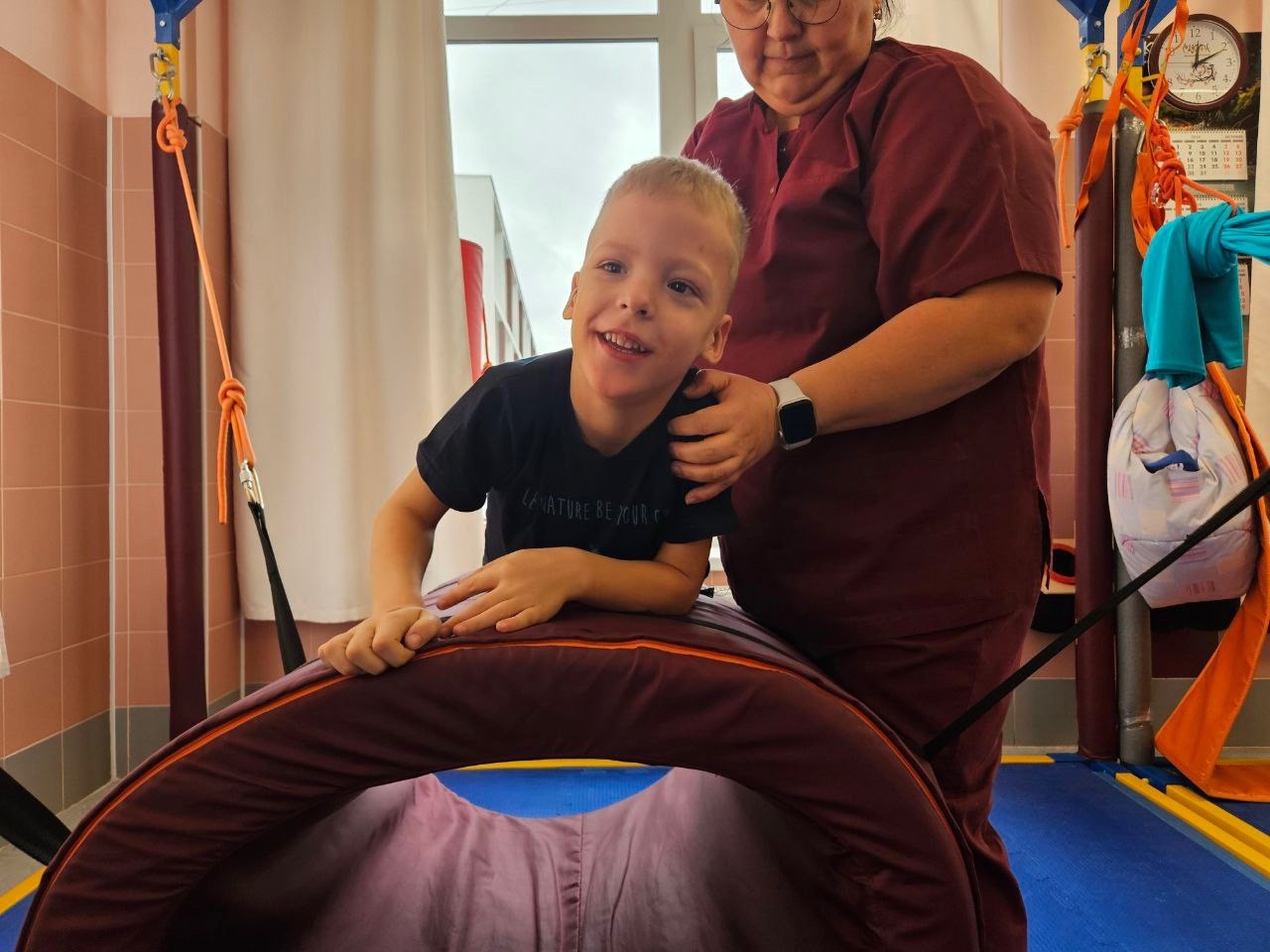 С этого момента начался путь постоянных реабилитаций. Данил прошёл уже более 15 курсов в разных центрах России. В 2022 году ему сделали серьёзную операцию – СДР (селективная дорзальная ризотомия), после которой ребёнок смог немного расслабить руки и ноги. Однако часть тонуса вернулась, и ему снова нужны регулярные занятия.
