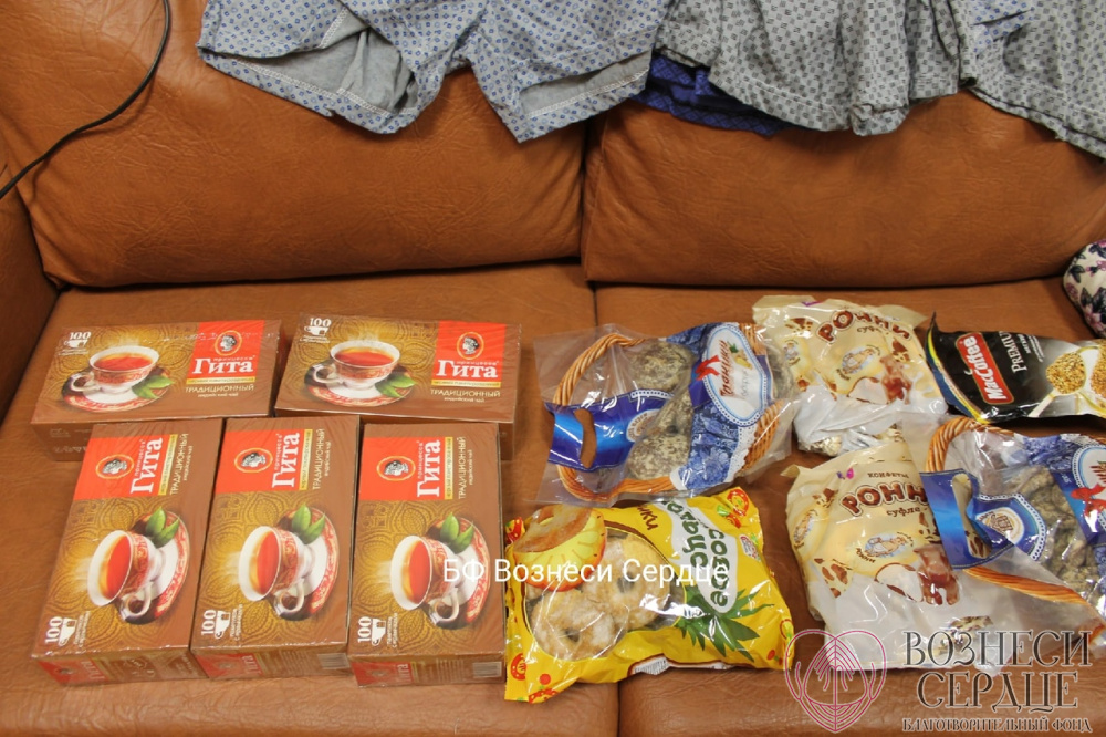 Наталья из г. Омск подарила много вкусностей для пожилых людей: пряники, конфеты, чай, кофе. И еще два халатика, платочки разноцветные, нижнее бельё для мужчин. Спасибо Вам огромное!», – пишут нам из Гдовского дома-интерната Псковской обл.
