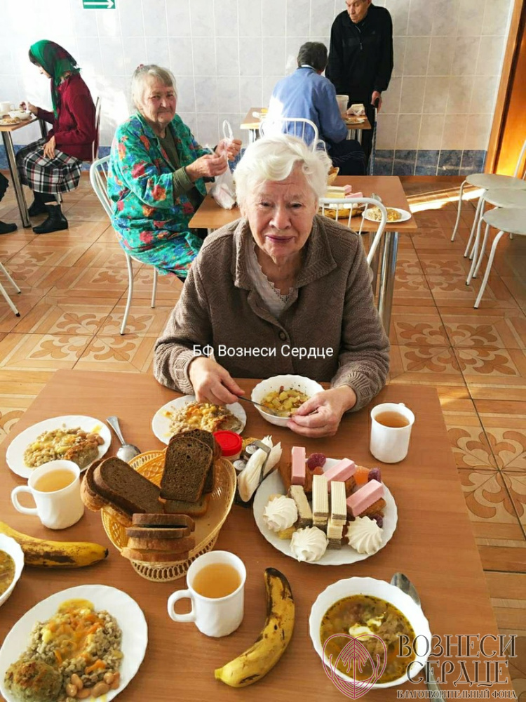 Сколько же радости у пожилых людей! С угощением есть повод для зимних посиделок.