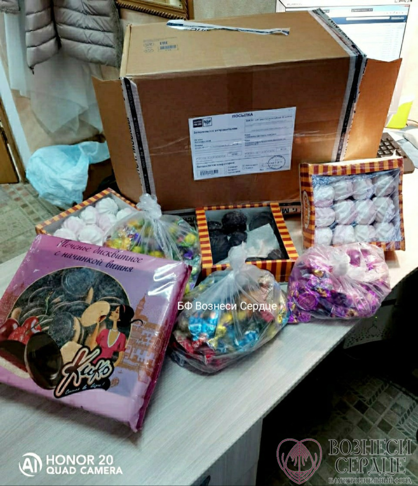 Добрая Юля из г. Москва прислала печенье, зефир и конфеты.