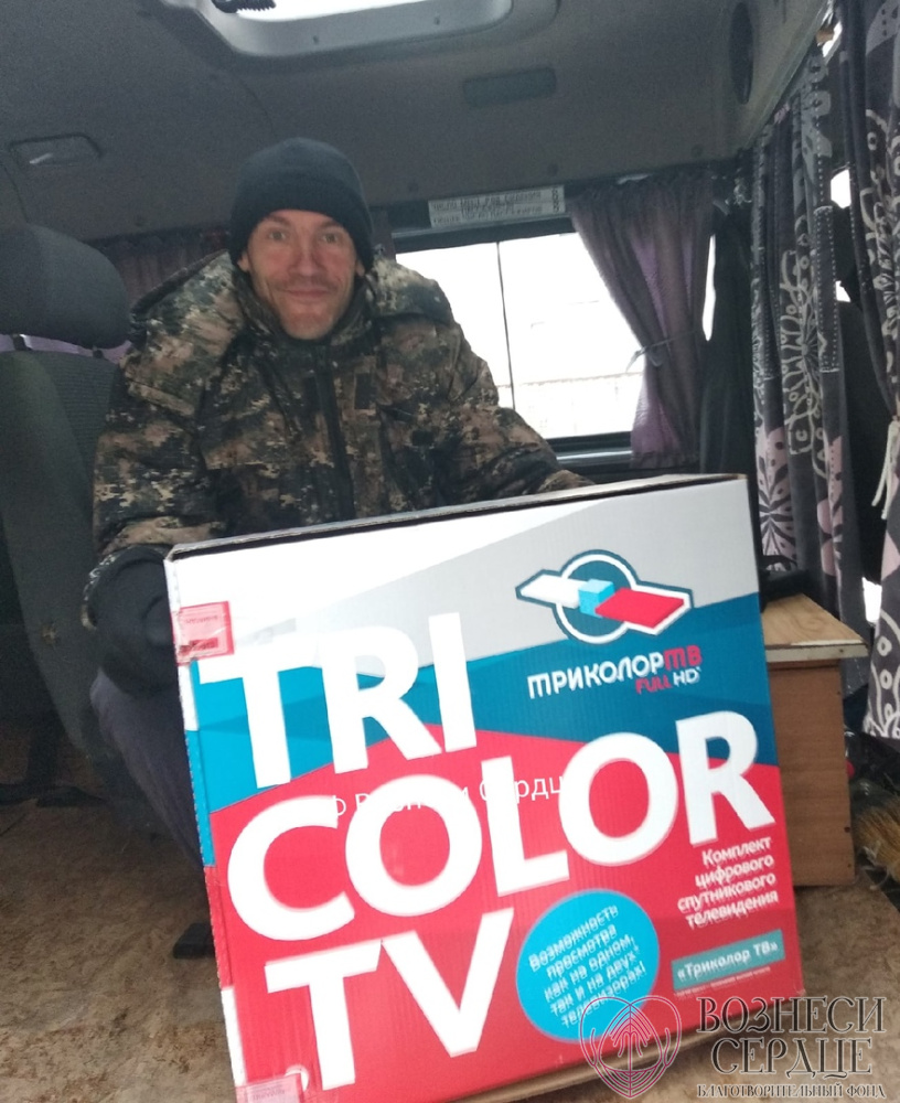 Благодаря вам мы подарили на 85- летие Свинтицкому Виталию Алексеевичу телевизор, а в другую комнату купили большой телевизор и комплект «Триколор ТВ» для четверых маломобильных мужчин.