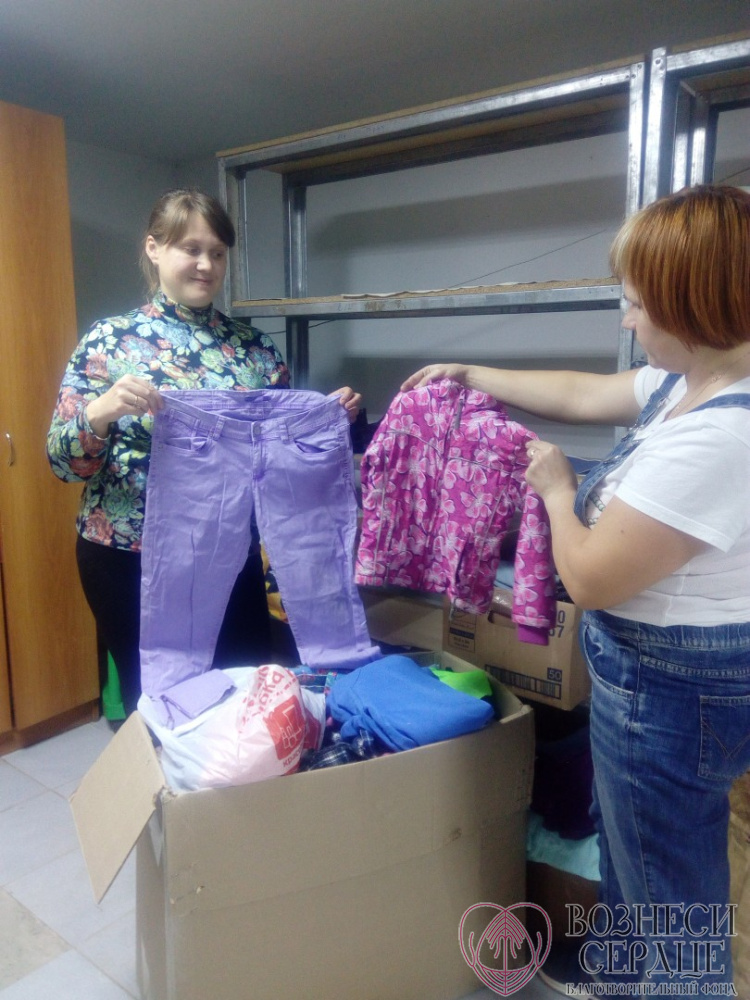 вещевая помощь (принимаем вещи от 0 и до вещей на людей пожилого возраста, а также подгузники для детей и взрослых и др.).