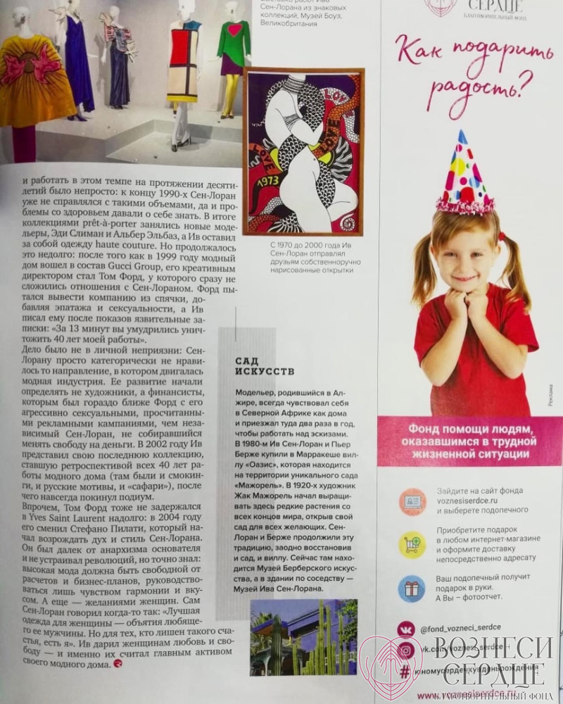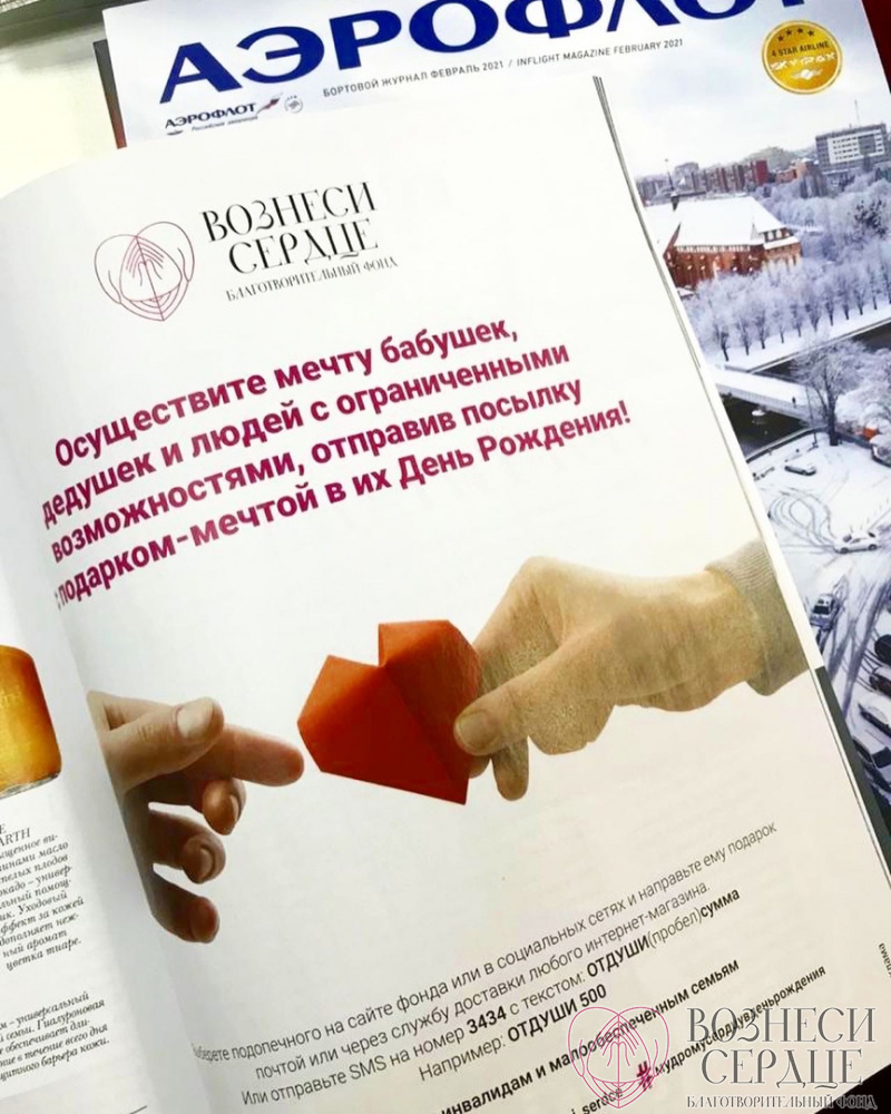 Информацию о нашем фонде опубликовали в издании бортового журнала «Аэрофлот» и «Россия», который можно было посмотреть на борту самолетов в январе, а теперь и в феврале.