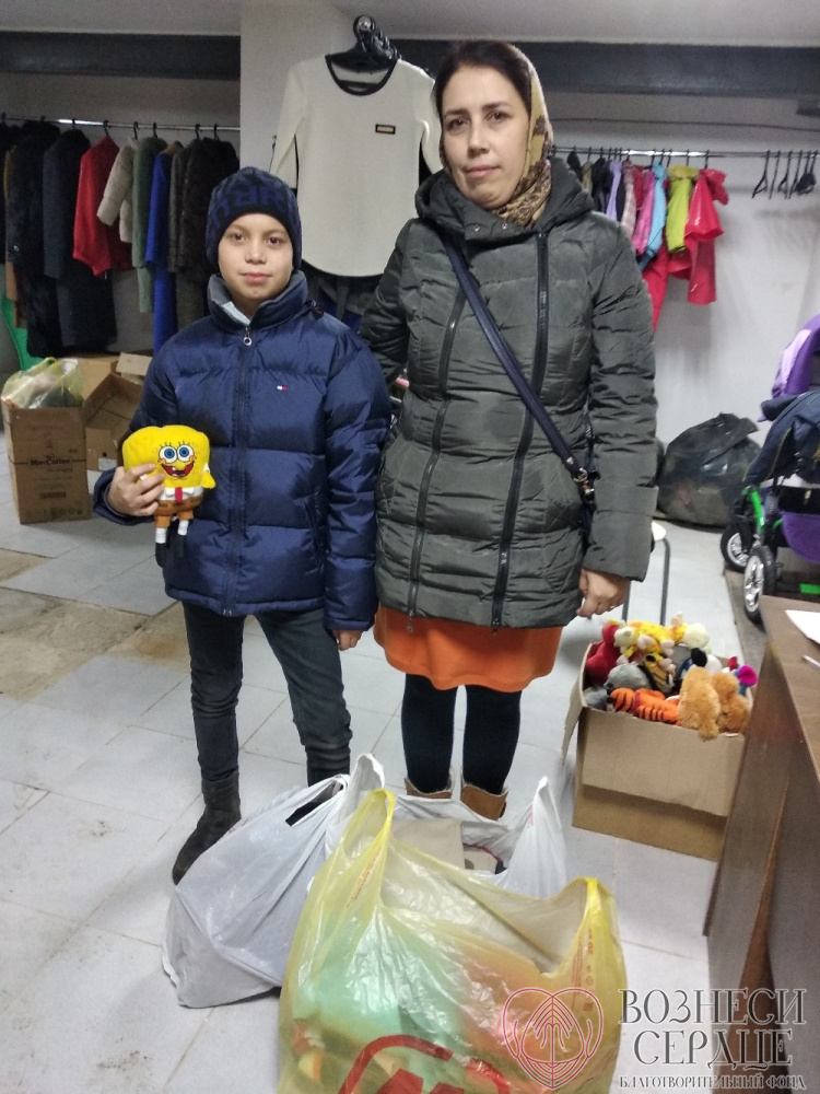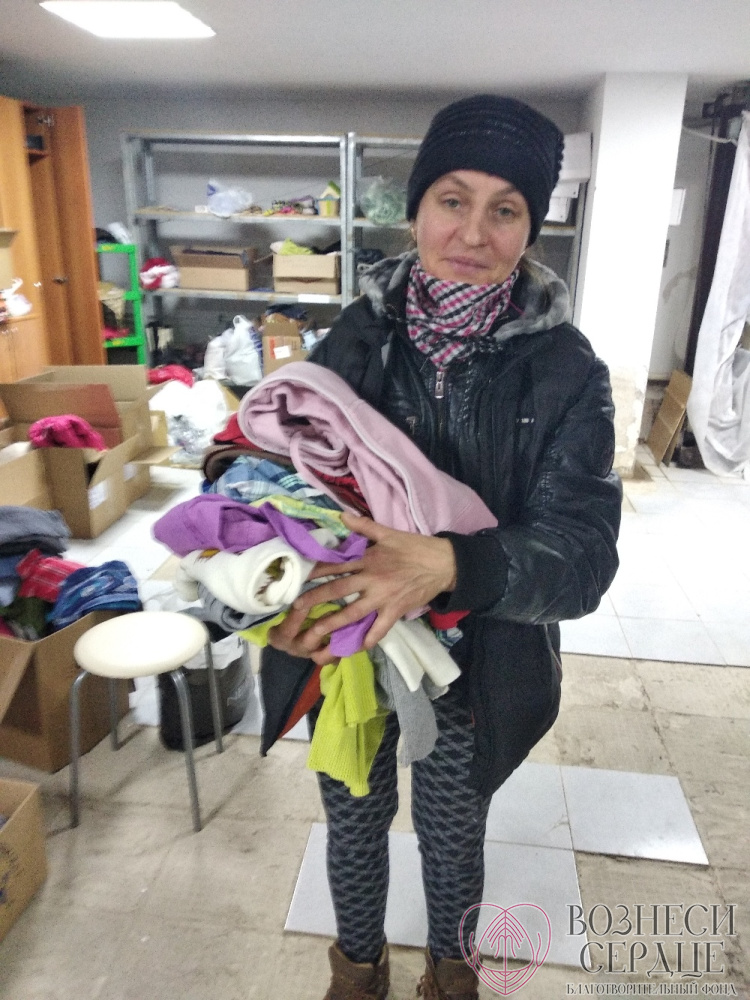 К нам приходят многодетные малоимущие мамочки, и мы помогаем им одеть детишек к зимнему сезону. Каждого подопечного мы просим принести пакет документов, чтобы подтвердить своё непростое положение. Поэтому стараемся работать честно и продуктивно, чтобы ваши вещи согрели действительно нуждающегося человека, а не стали лёгкой приманкой для не желающих работать.