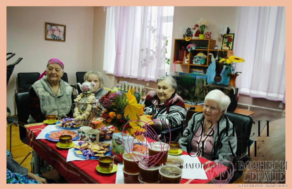Такие встречи за чаем очень важны для одиноких людей, тем более сейчас, когда из-за эпидемии невозможны встречи, концерты и различные мероприятия. Весь мир бабушек и дедушек — это дом-интернат. А ведь им так хочется тёплых встреч!