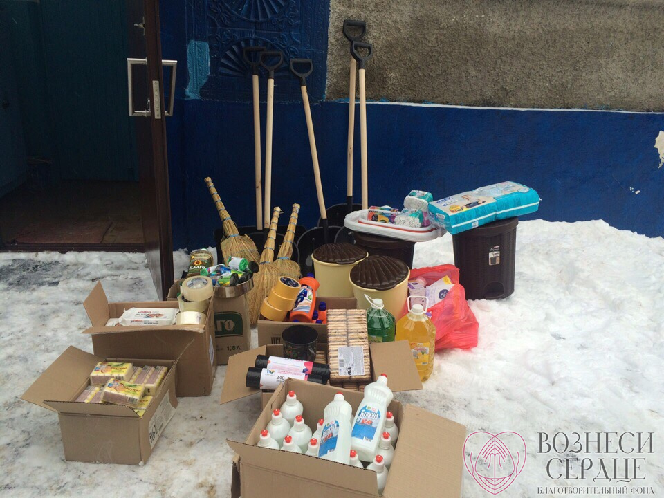 Конечно, к детям мы не ездим с пустыми руками. Мы привезли фрукты (мандарины, яблоки, фейхоа) и печенье. Также купили средства гигиены: подгузники, влажные салфетки, моющие средства. Для поддержания чистоты на территории детского центра мы приобрели веники и лопаты. Теперь зима с сугробами не страшна, когда выйдет отряд юных помощников! Так же удалось оплатить ремонт машины приюта, это вышло в 20000 руб.