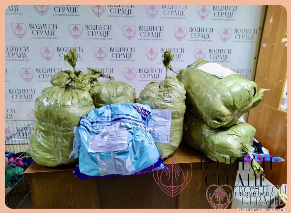Мы получили 6 мешков и посылку с вещевой помощью для подопечных нашего склада.