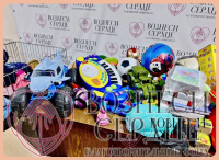 - раскраски, конструкторы, мягкие игрушки, детские лопаты, грабли.