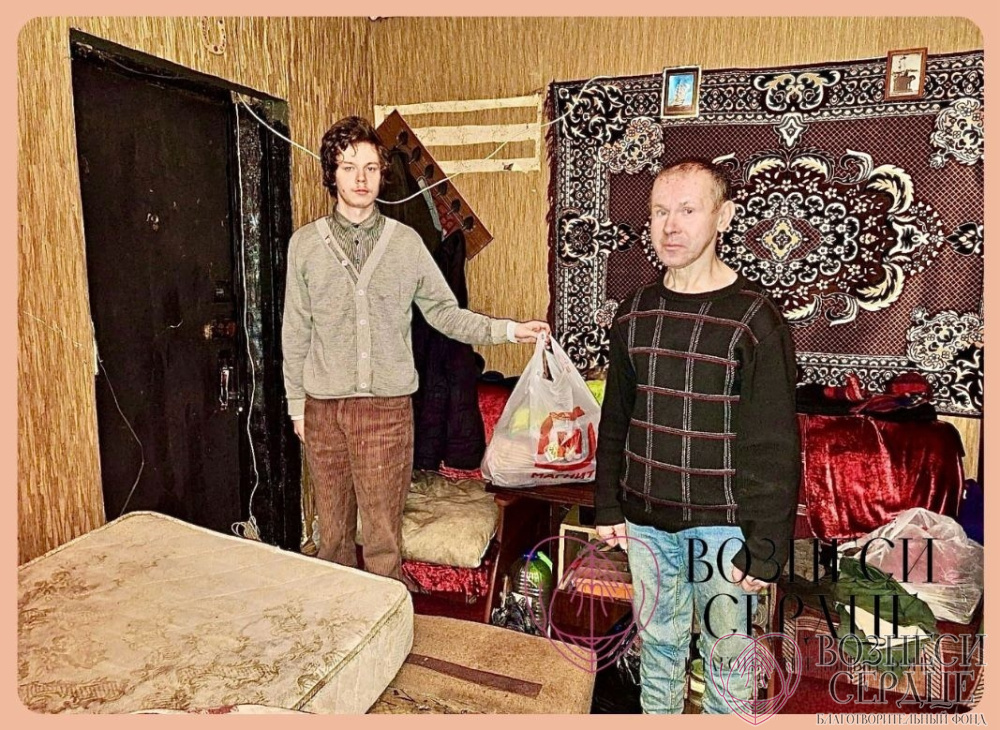 А ещё у нас есть новая подопечная семья – папа и сын. Добрые люди случайно встретили их на улице, у отца случился приступ эпилепсии, а сын был растерян и не знал, что делать в этой ситуации. К нам обратились, как к фонду, помочь хоть чем-то этой семье. Наши волонтёры навестили семью, отвезли продукты. Отец какое-то время не работал, но вот пару дней назад устроился банщиком, но пока средств к жизни у них нет совсем. Пока мы думаем, чем сможем помочь, семья нас не оставила равнодушными. Помощь и поддержка там срочно нужна, будем держать вас в курсе. Сейчас мы занимаемся восстановлением паспорта отцу. Продуктовая помощь для этой семьи всегда актуальна. Вы можете заказать продукты в интернет-магазине. Наш волонтёр заберёт заказ и доставит семье.