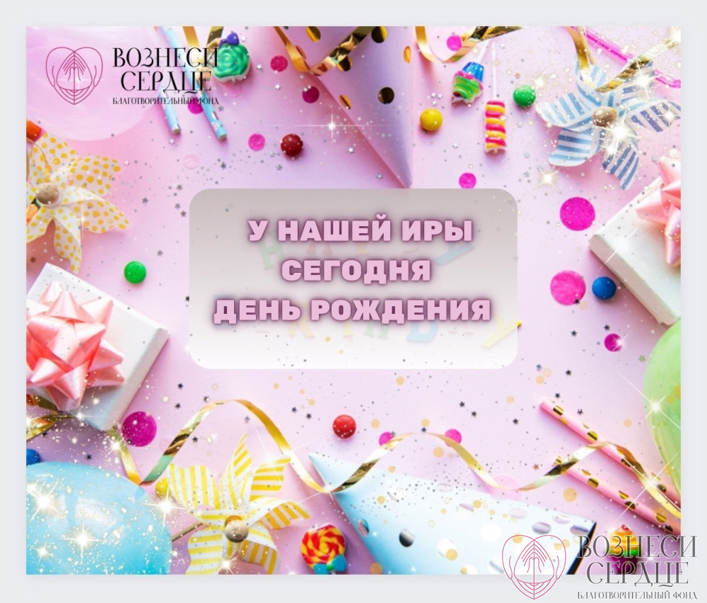 Мы от лица фонда и многих наших подопечных поздравляем нашу Иру с днём рождения. Желаем ей здоровья, любви, мира и согласия в семье. Пусть все трудности будут по плечу, а самые заветные мечты исполняются.