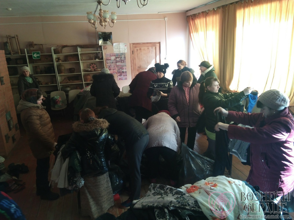 Раздавали вещи в администрации сельского поселения, за что благодарим наших помощников, которые привезли одежду в деревню. Здесь очень актуальна женская и мужская одежда, обувь, постельное бельё.