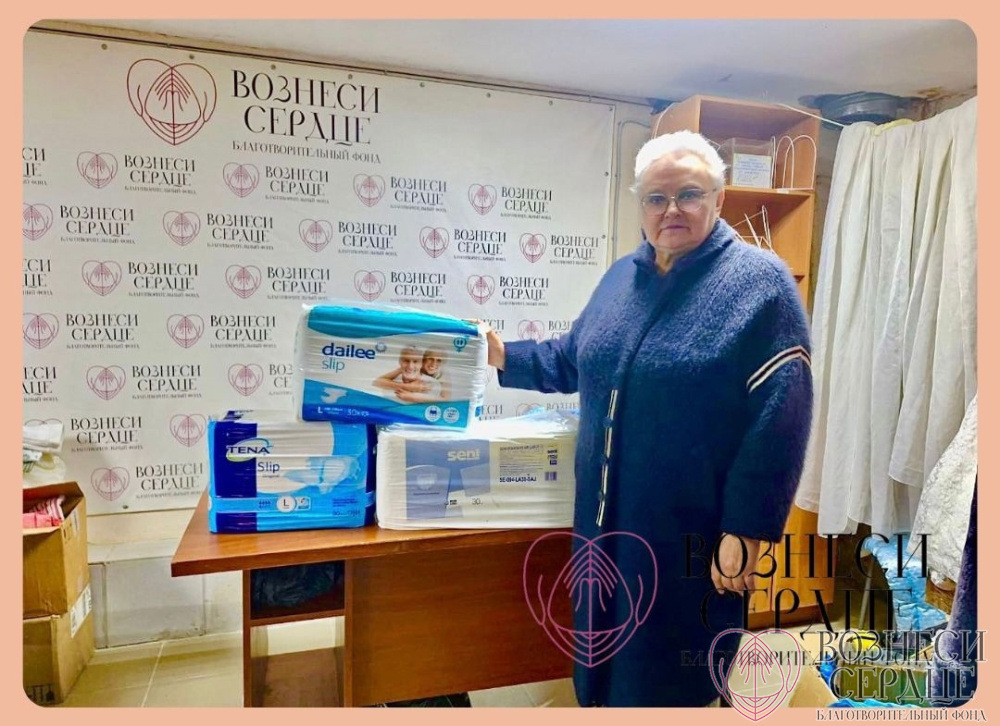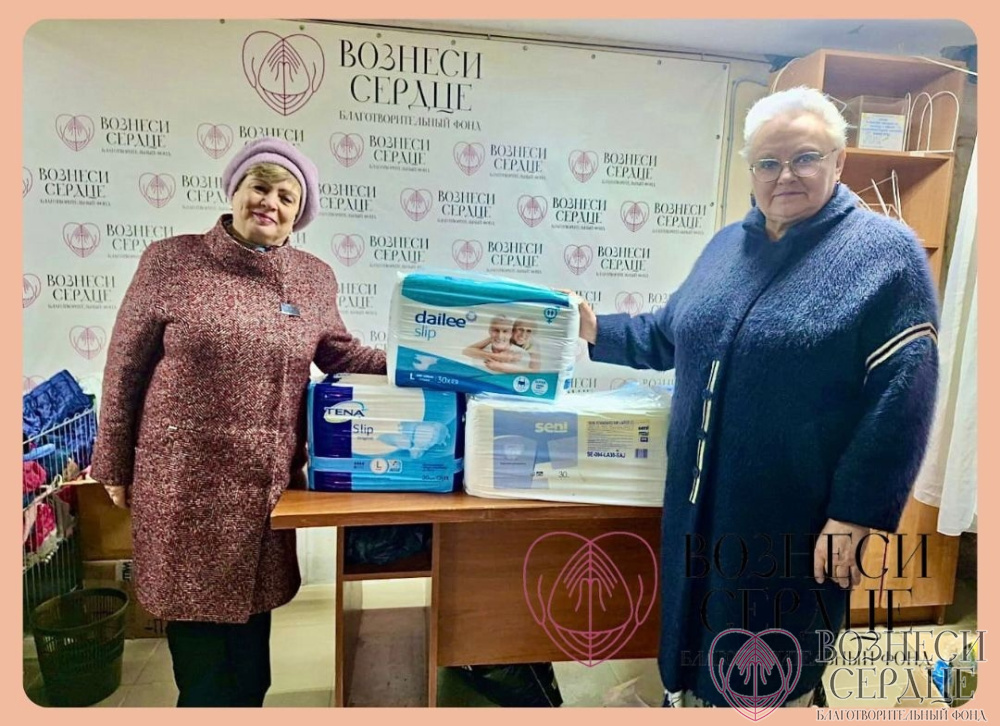 Приезжали к нам гости и из Новосельского дома-интерната. Для них мы передали подгузники для взрослых и вещевую помощь.