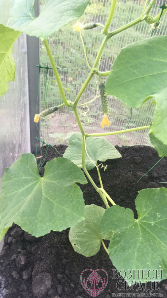 Посмотрите, как наливаются соком маленькие плоды. Очень скоро первые огурчики будут на столе у детишек.