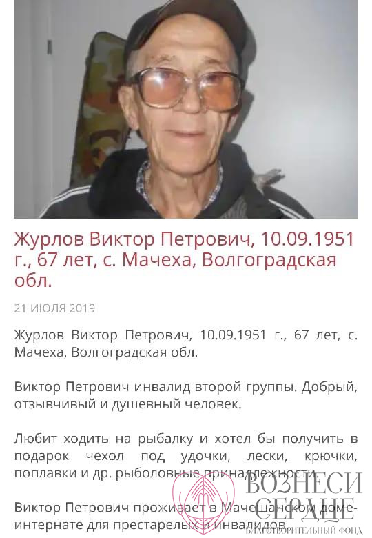 – Журлов Виктор Петрович проживает в Мачешанском доме-интернате. Ему 10 сентября исполнится 68 лет.