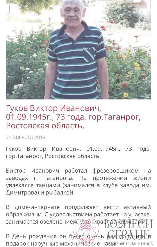 – Гуков Виктор Иванович отметил свой 74 день рождения 1 сентября в Таганрогском доме-интернате.