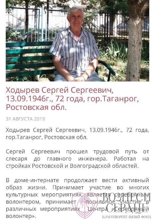 – Ходыреву Сергею Сергеевичу 13 сентября исполнится 73 года.