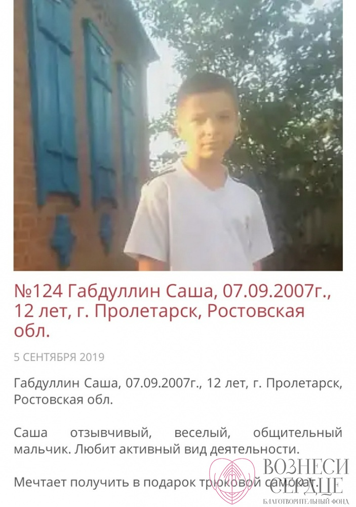 - Габдуллин Саша из г. Пролетарск мечтает о трюковом самокате. Послезавтра, 7 сентября, он отметит 12 лет!
