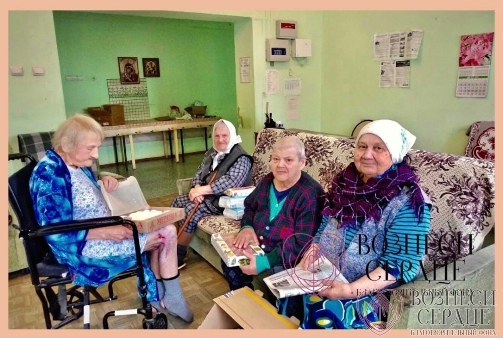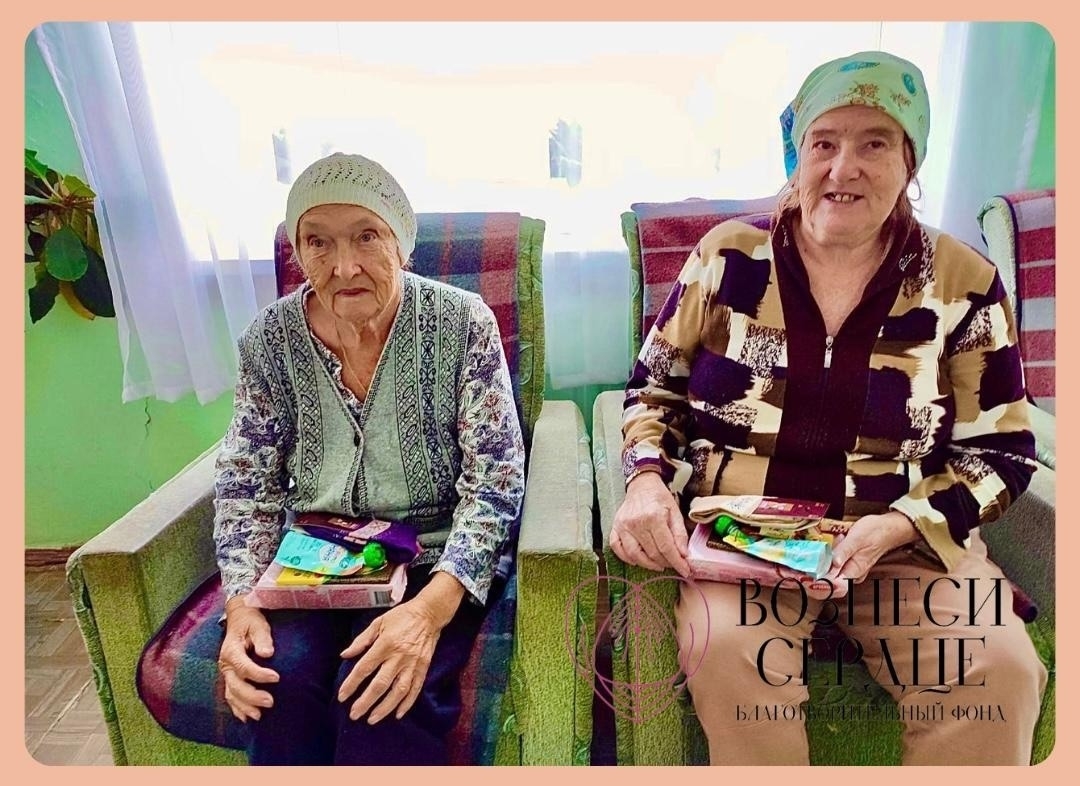 Праздничное чаепитие. Мы хотим заказать в местной кулинарии их любимую большую ватрушку, купить мандарины и бананы. Если соберем чуть больше - купим сахар и сливочное масло. Это позволит бабушкам попить чай у себя в комнате, в тишине и уюте, вне графика столовой. Для них это - символ домашнего тепла.