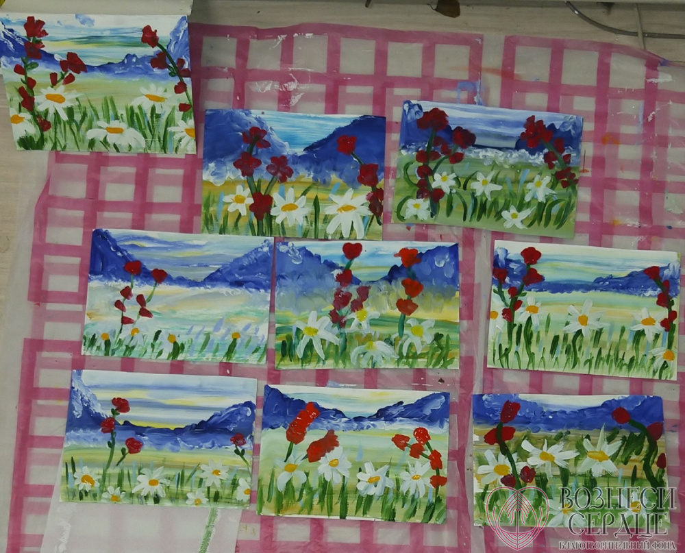 Дети без страха и волнения нарисовали альпийские луга, горы, море, небо. Красота одним словом, тем более, если учесть, что никто из ребят не занимается профессионально рисованием.