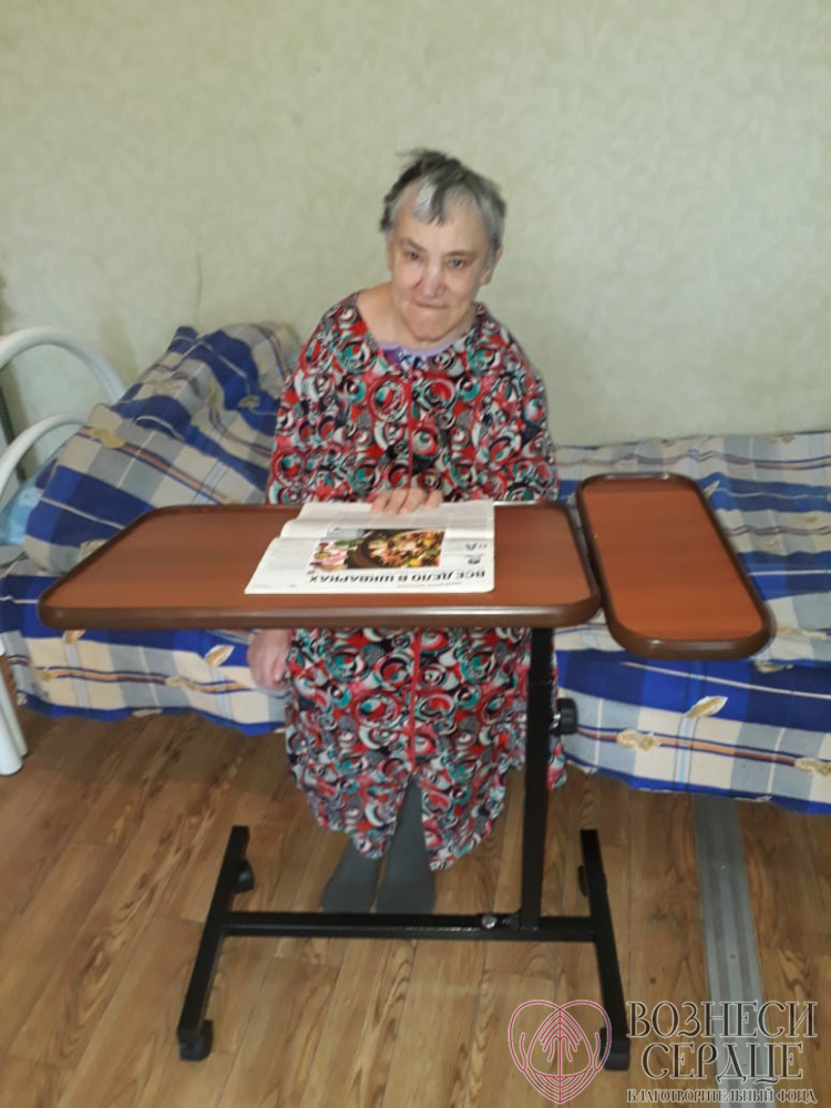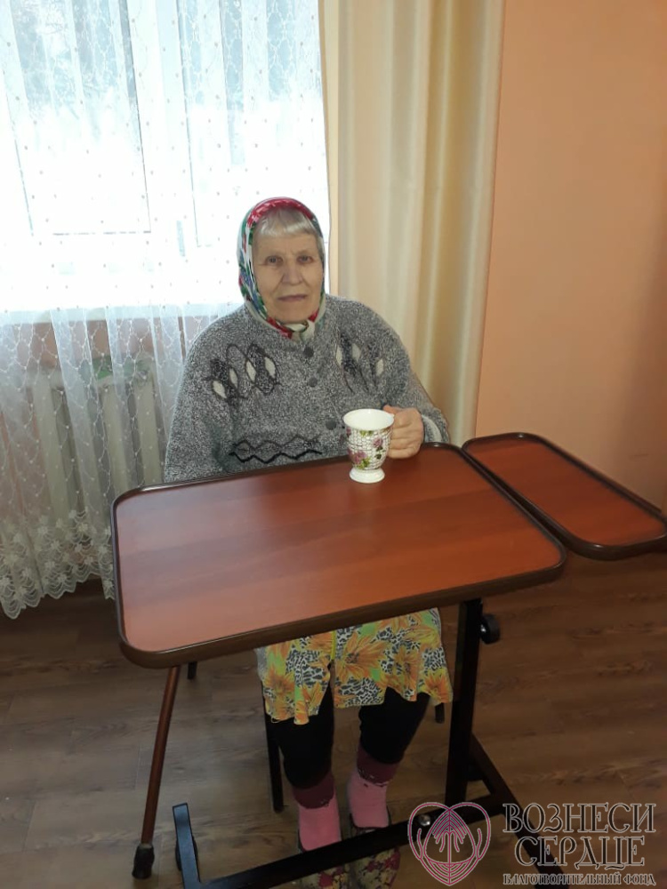Благодаря вам, мы смогли сделать такой шикарный подарок перед Новым Годом пожилым людям и инвалидам! Это такое счастье для них! Маломобильные люди едят в своей комнате, и без столика было совсем неудобно. Теперь люди смогут не только есть, но и читать, рукодельничить и играть в настольные игры.
