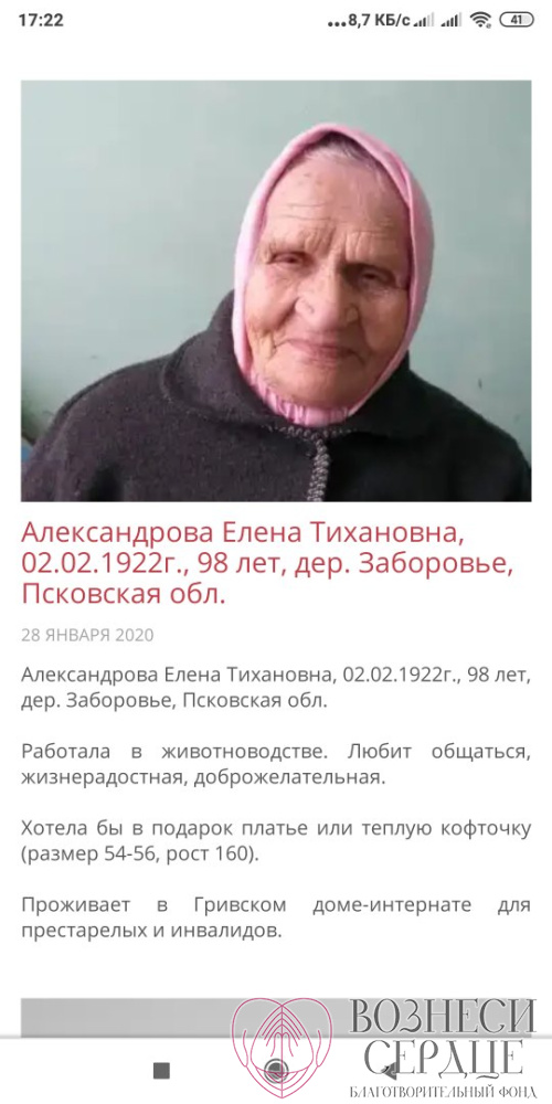 Нужно зайти в акцию #мудромусердцувденьрождения, нажать там январь или февраль и вы сразу увидите людей, которые ждут от нас осуществления мечты! В сети мы выставляем только скрины с анкетками, не на всех видны пожелания пожилых людей!
