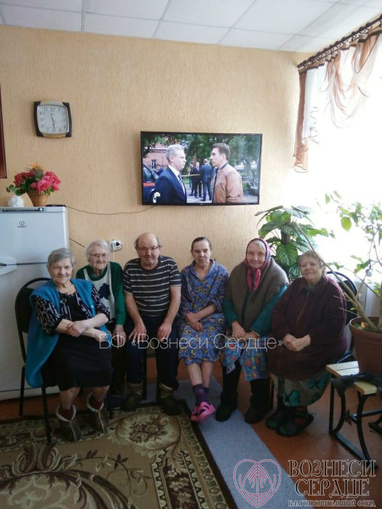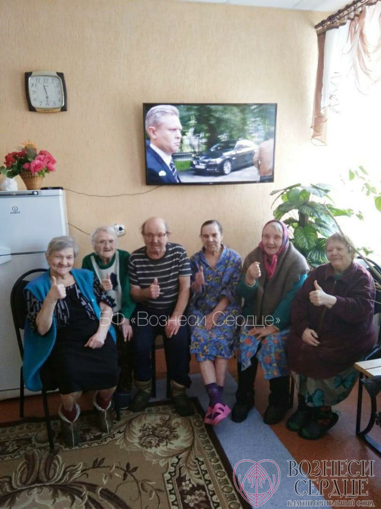 Мы благодарим благодетеля, который подарил этот телевизор учреждению! Желаем ему здоровья, исполнения всех желаний, радости и всех благ!