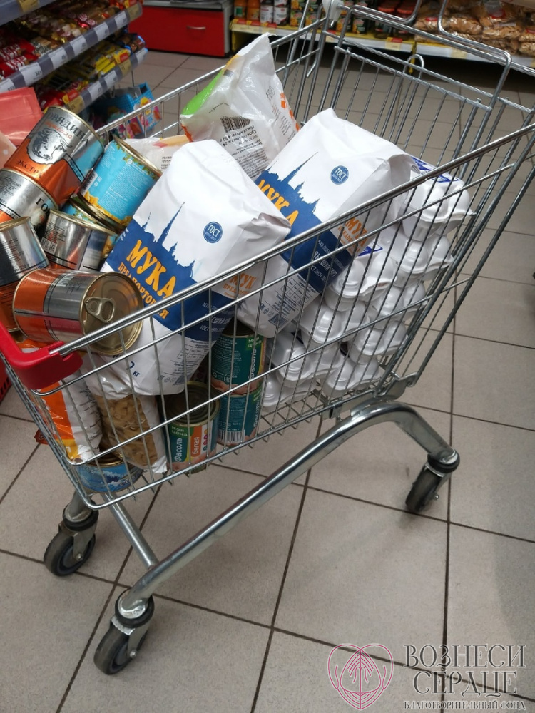 Много людей нуждались в продуктовой помощи. Мы решили сегодня из остатков продуктов (не все забрали вчера) сформировать ещё наборы и выдать их.