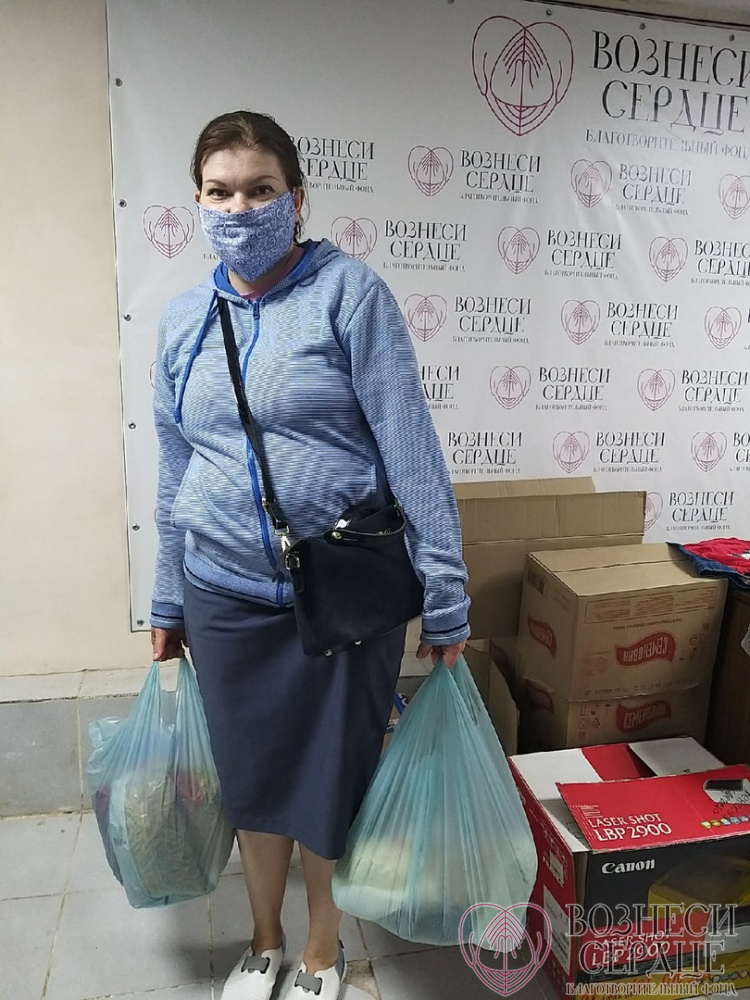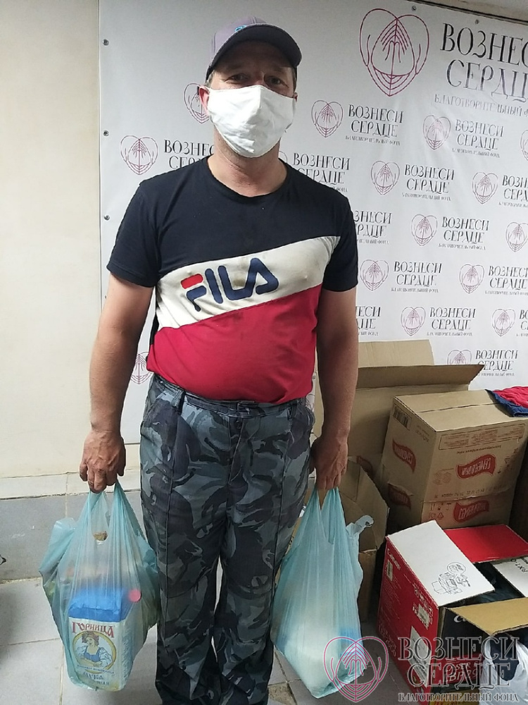 Сегодня мы продолжали помогать продуктами. Выдавали наборы, которые остались после пятничной раздачи (3 набора не забрали).