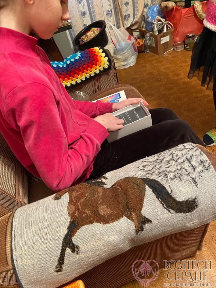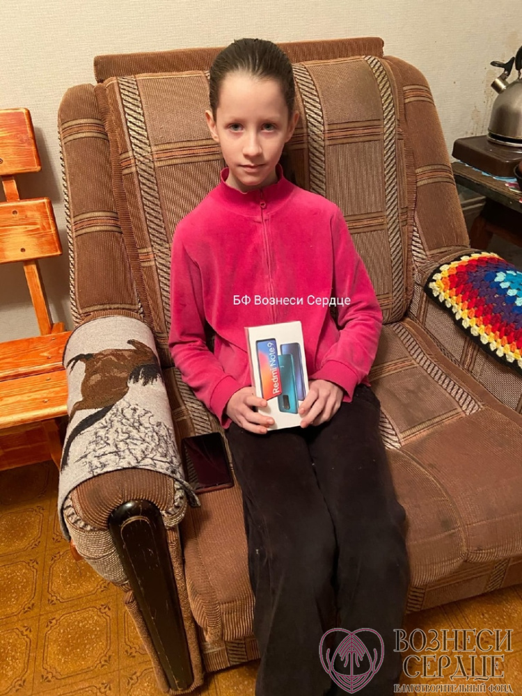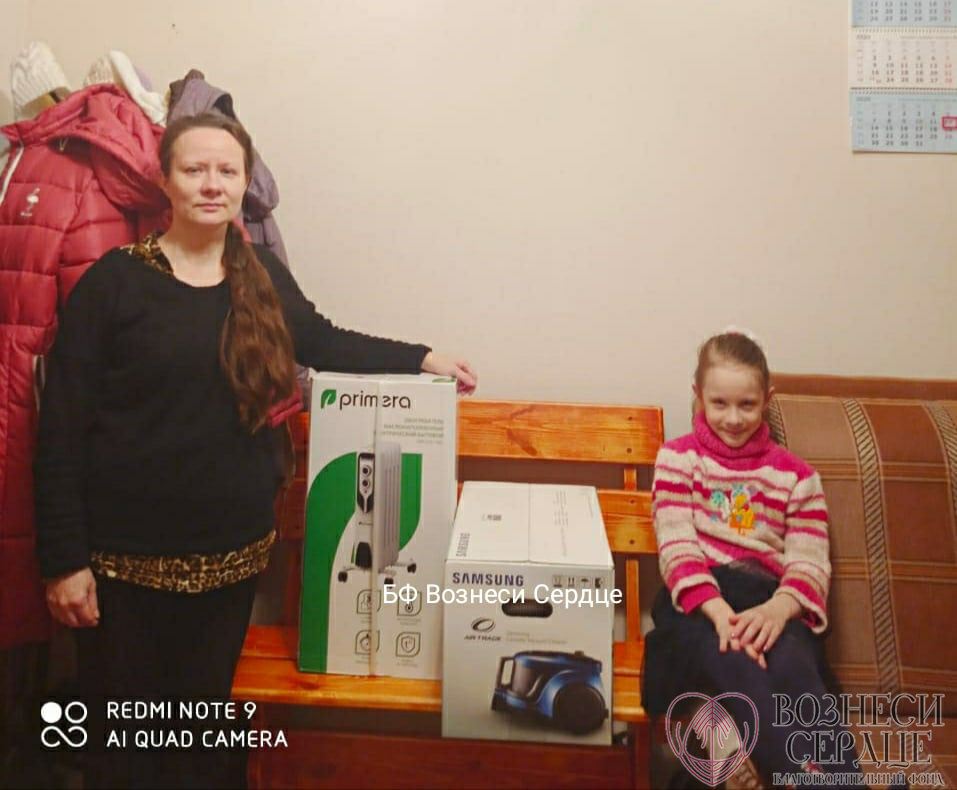 Семье мы пока купили пылесос, обогреватель, а старшей девочке телефон взамен нерабочего.