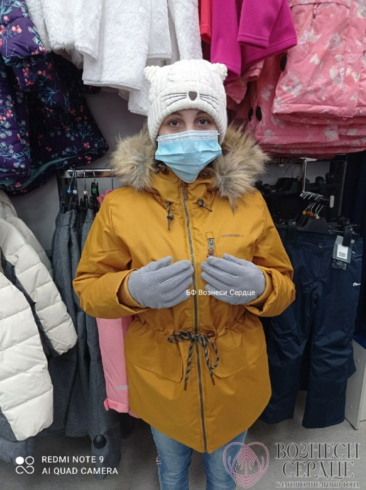 Доброе дело не заставило долго ждать. Сегодня Кристина в новой куртке, шапке и перчатках.