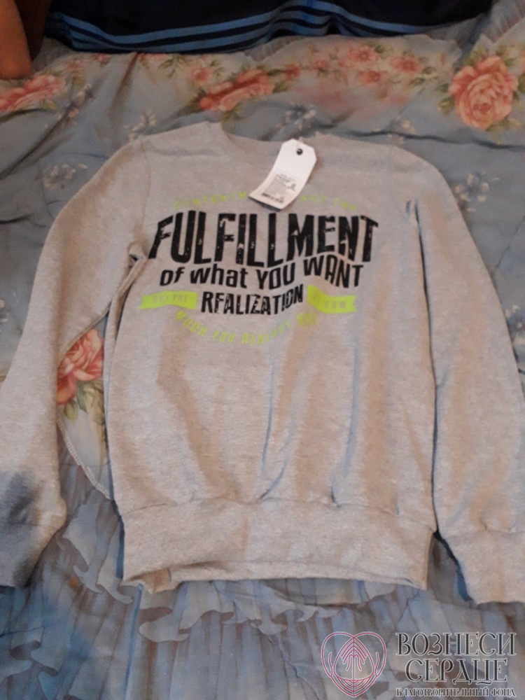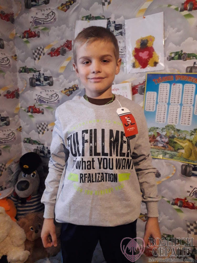 Заказала добрая Ангелина из Москвы, она точно выбрала все размеры и порадовала детишек. Настя теперь в красивом платье, довольная и счастливая, как и все девочки от новых нарядов. Вову и Юру нарядили в тёплые свитера, на следующий день они сразу пошли в обновках в школу.