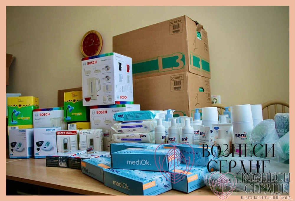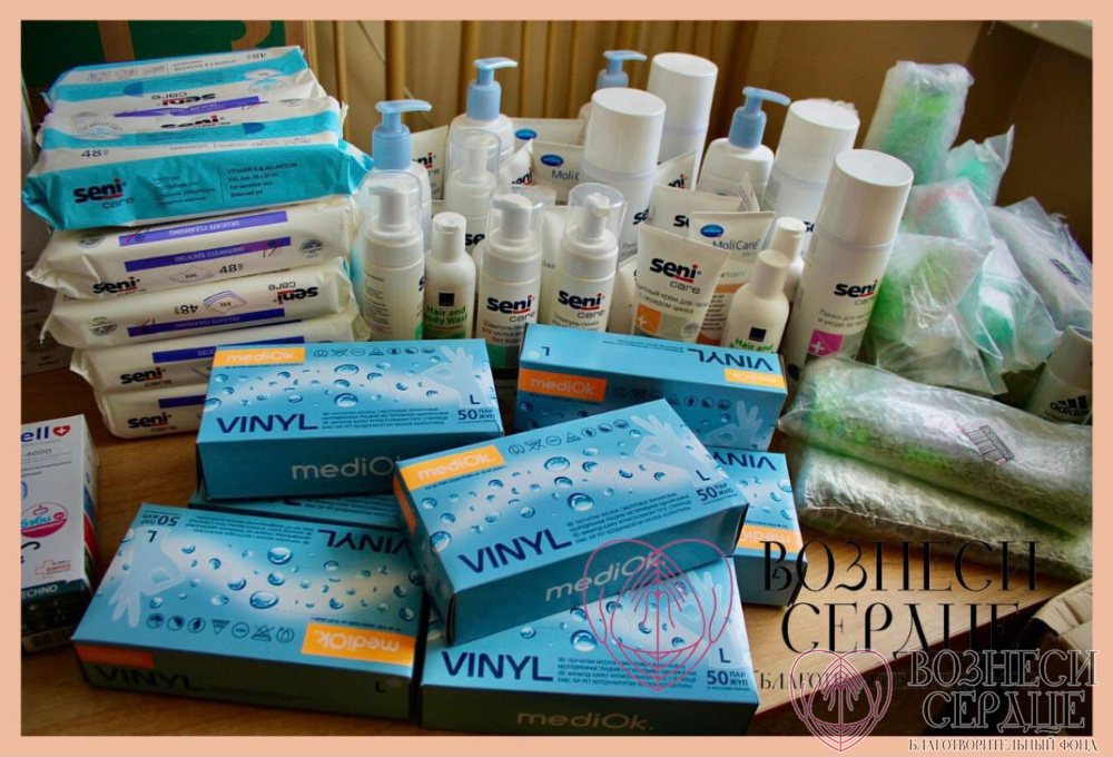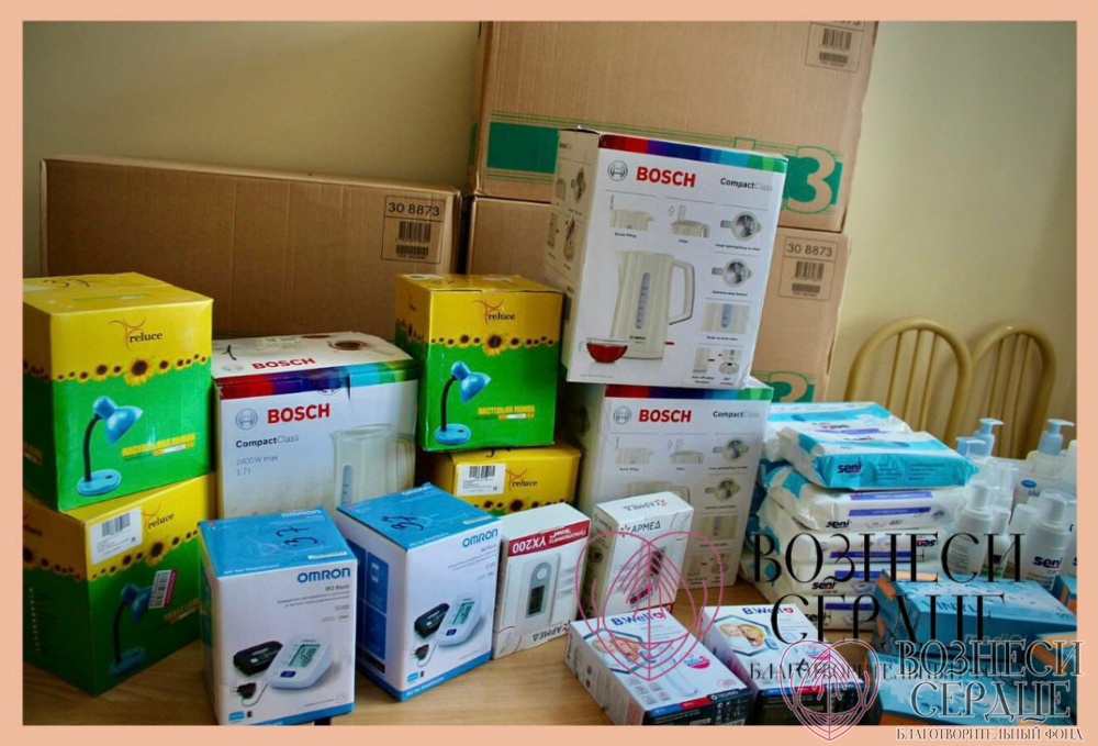Добрая семья направила в учреждение не только сладкие подарки для пожилых людей и сотрудников, но и средства гигиены (перчатки, антиперспиранты, пену для бритья, крема, шампуни, присыпки по уходу за лежачими больными, перчатки, подгузники), пульсоксиметры, тонометры, градусники бесконтактные (все по 2 шт.), чайники электрические, настольные лампы.