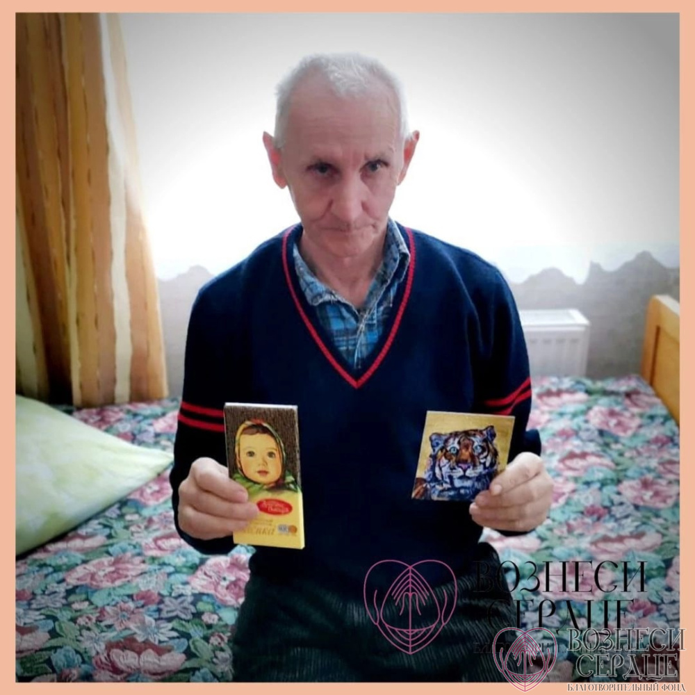 Уже несколько лет после смерти родителей Дима живёт здесь в вместе с бабушками и дедушками. Он здесь самый молодой. Самостоятельно жить Дима не может из-за умственной отсталости, поэтому дом-интернат стал ему родным домом. Живёт он с пожилыми людьми дружно, помогает им во всём. Дима не боится работы и всегда готов проявить себя, если нужна мужская помощь. Коллектив в учреждении в основном женский, да и пожилые люди уже немощные, поэтому помощь всегда нужна и важна! Диму здесь любят и относятся к нему, как к своему сыну или внуку. Пожилые люди и сотрудники по возможности угощают его сладостями и стараются подбодрить.