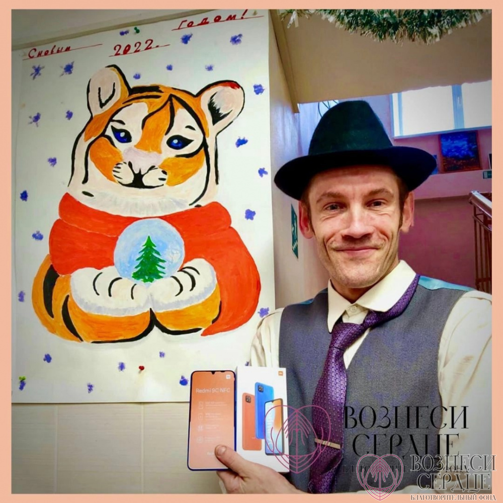 Мы подарили Диме сенсорный телефон. Изначально мы планировали подарить его другому имениннику, но он выбыл в другое учреждение. Директор предложила порадовать в Новый год Диму в знак благодарности за его постоянную помощь и труд на благо учреждения.