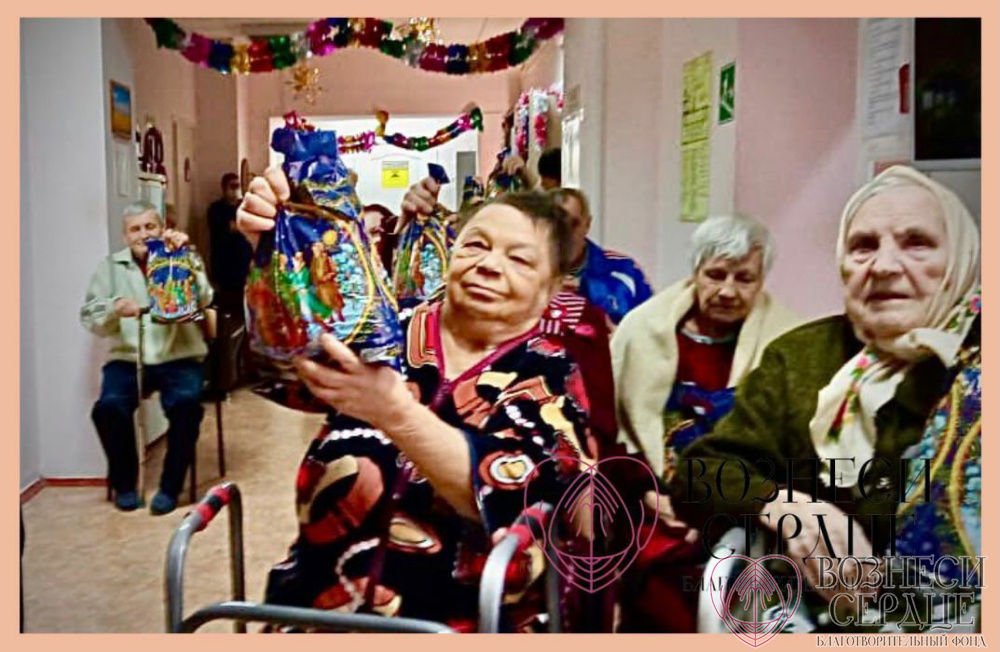 Бабушки и дедушки благодарят всех добрых волшебников за сладкие подарки! Новогодние праздники здесь ждут особенно, и пожилые люди, слово дети, радуются любому вниманию от нас с вами.