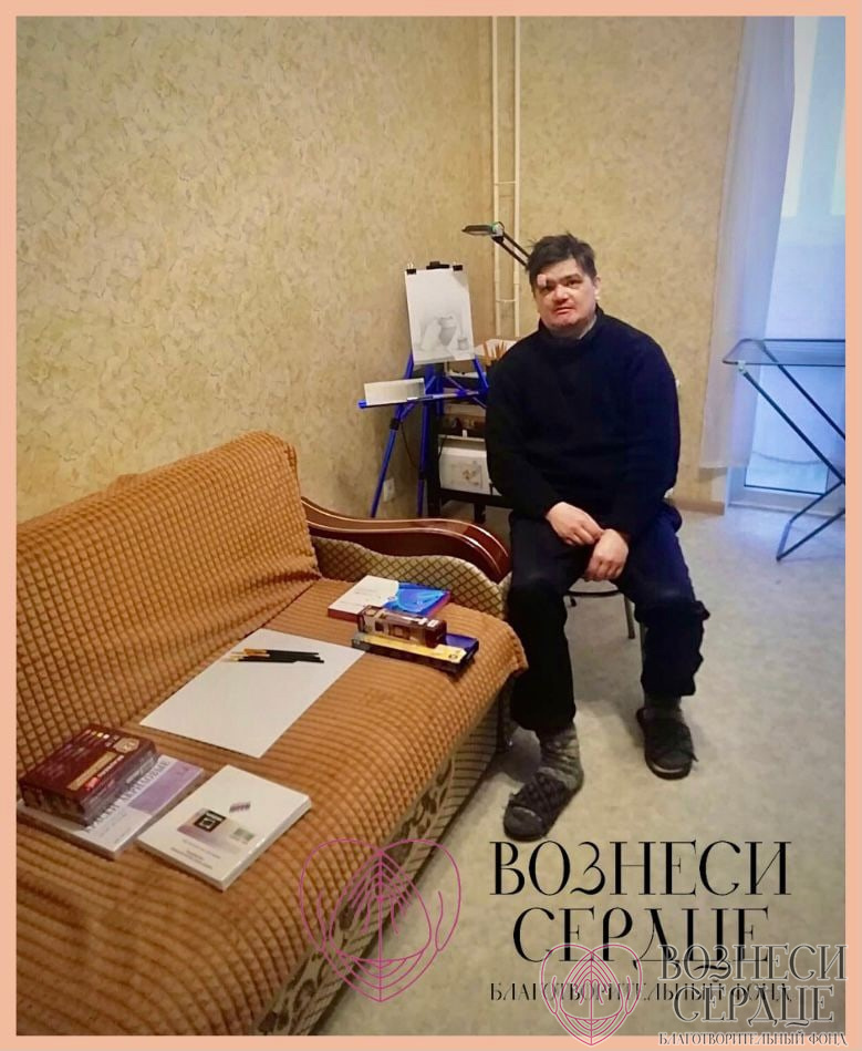 Молодой человек рисует, пишет стихи, читает и занимается саморазвитием. Его мир — небольшая квартира, куда редко кто-либо заходит. Творчество помогает ему отвлечься от грустных дум, а ваша помощь придаёт много сил для жизни! Вы не представляете насколько для него важна наша помощь! Положительные эмоции у него от того, что люди прониклись, посочувствовали и помогли! Ему важно осознавать, что мир не без добрых людей!