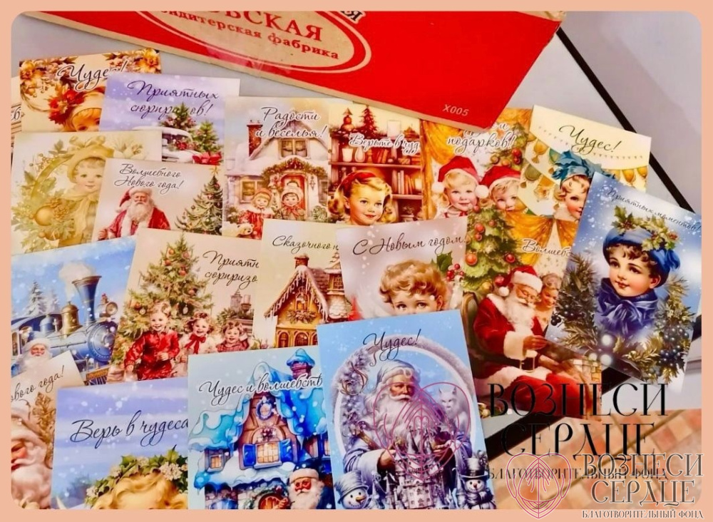 Халва, коробка печенья «Ванюшкины сладости», «Алёша Попович» - всё это было на праздничном столе. А ещё Жанна прислала рождественские открытки. Как же тепло на душе от такой доброты. Спасибо доброй Волшебнице Жанне за праздничное настроение, которое удалось создать не только Зое Сергеевне, но и всем проживающим.