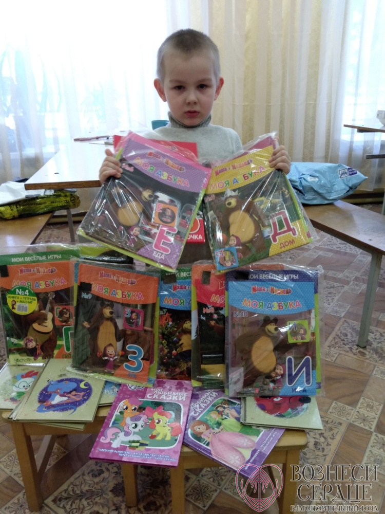 Санина Ольга прислала ребёнку добротную красивую одежду, игрушки, книжку и краски. Посмотрите, какой нарядный Ярослав!