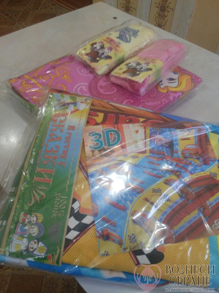 - Ещё посылка для детского центра пришла с 2 комплектами постельного белья и колготками для девочек от Паспортниковой Ирины из Москвы.